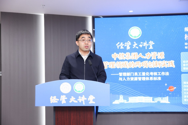 3月27日,中国核工业集团公司副总经济师、人力资源部主任杨朝东做客304am永利集团官网“经管大讲堂”,以《人力资源管理领域的两项创新实践——人力资源管理体系标准、管理部门员工量化考核工作法》为题作专题授课,讲座由304am永利集团官网院长王群伟主持,百余名师生到场参加。
