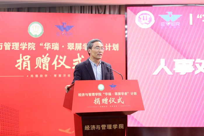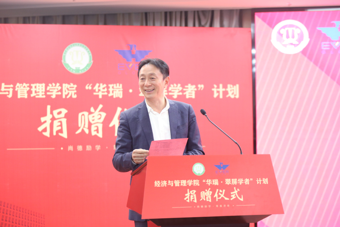 康宜华院友对学校和学院的邀请表示感谢,对能为母院发展助力感到欣慰和自豪。他以亲身经历激励青年学者们要树立远大理想,勤勉敬业,在实干中实现自己的人生价值。他强调,科技是第一生产力、人才是第一资源、创新是第一动力,要有“让世界一流人才为我所用”的眼光,实现人才“量的合理增长,质的稳步提升”。他表示,捐赠是有限的,华瑞集团立足长远,正在和学院共同探索教育培训合作新机制,瞄准引进世界一流人才,增强学院持续造血功能,形成更大的高层次人才蓄水池。