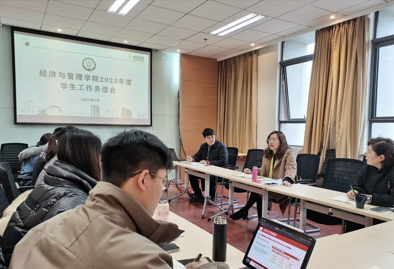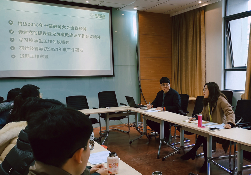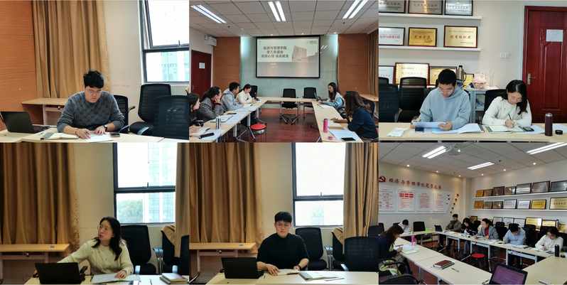 胡苹首先对三次会议精神进行了领学。她指出,学校干部教师大会、党的建设暨党风廉政建设工作会和校学生工作会为我们指明了2023年工作的方向,一要提高政治站位,从学校工作大局出发,结合304am永利集团官网实际,有的放矢、创造性地谋划工作,增强工作的系统性。二要聚焦工作重点难点,坚持问题导向,花大力气解决好学风问题和就业问题,将思想引领与解决学生突出问题紧密结合,增强工作的有效性。三要坚持创新驱动发展,探索本研贯通、一体推动的思政模式,持续打造思政工作品牌,增强工作的协同性。四要不折不扣抓落实,坚持“理论学习、深入学生、研用一体”,必须结合学院实际落实落细,拿出真招实招,增强工作的针对性。最后,她强调,“牢记育人之责、落实育人之任、抓好育人之能”,必须时刻牢记育人初心使命,必须带着思考、感情和责任工作,为培养一流的经济与管理类人才做出更大的贡献。