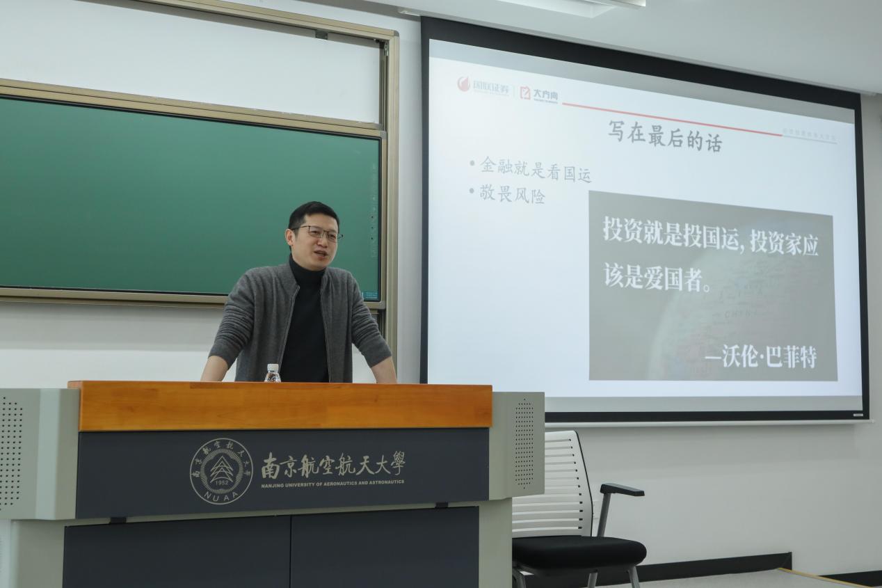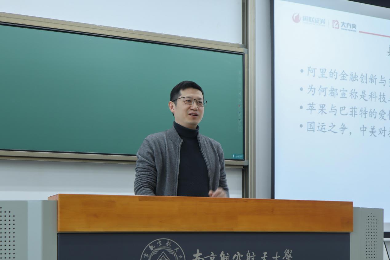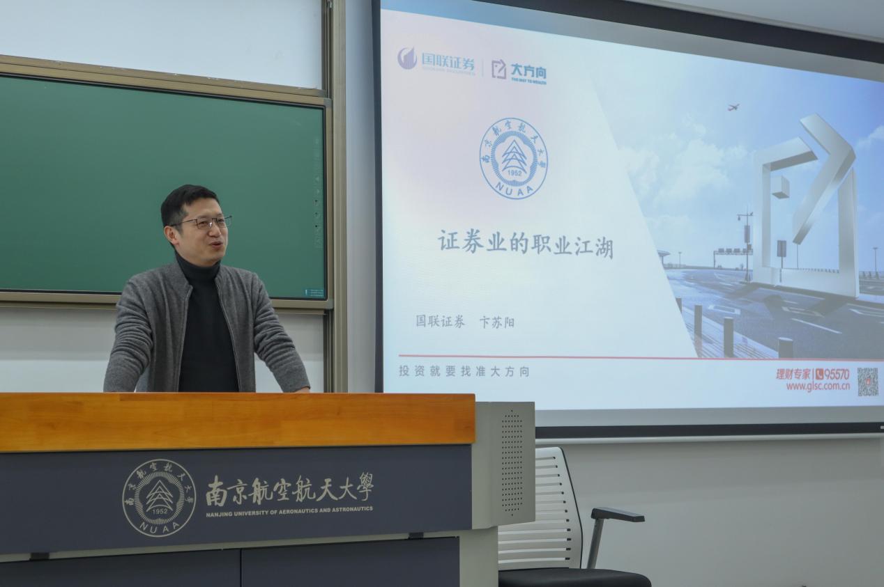 卞苏阳总经理在讲座中明晰了会计专业硕士在金融行业中的就业形式、券商在金融行业中的发展前景、国联证券公司在券商企业中的中坚位置,同时对南航MPAcc学生专业素质与品德作风表达了高度肯定。卞苏阳主要从6个板块展开:金融行业的实际情况、证券行业的具体数据、国联证券公司的概况介绍、金融就业的共性问题、对于同学们的建议以及职场中的宝贵经验分享。