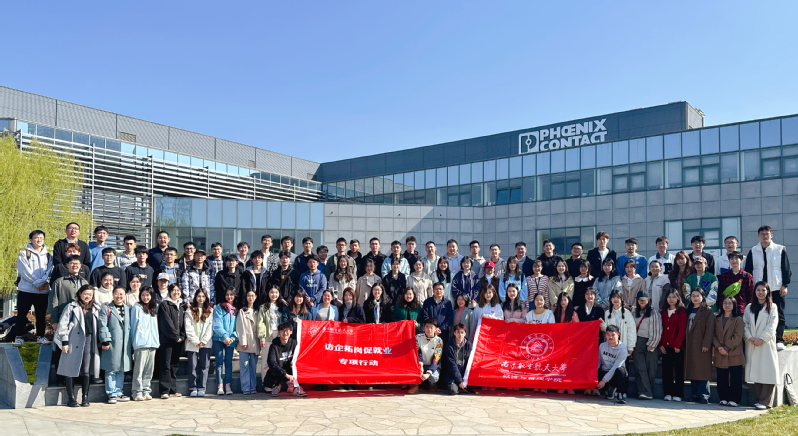 为全面深化信管本科教育综合改革,完善产业需求导向的人才培养模式,促进人才培养供给侧和产业发展需求侧结构要素全方位融合,进一步和产业界交流,加强信管专业课程建设应用,提升产教融合程度及学习贯彻党的二十大精神,扎实落实党中央、国务院“稳就业”、“保就业”决策部署,拓展就业渠道、深化校企合作、强化供需对接,从需求端完善人才培养体系,3月12日下午,304am永利集团官网党委副书记胡苹、管理科学与工程系主任米传民,信管专任教师、辅导员代表以及信管专业本科生、研究生70余人赴南京菲尼克斯电气公司开展“信管产教融合课程建设“和“访企拓岗促就业”走访交流活动。