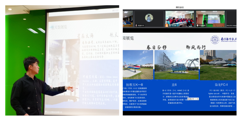 在宁藏两地的线上课堂上,陈则豪同学向堆中学生们介绍了304am永利集团官网的“三航”特色,以校御风园内各类机型科普三航知识,重温“特别能吃苦、特别能战斗、特别能攻关,特别能奉献”的三航精神,让在场同学大开眼界,播下一颗飞向蓝天的梦想种子。