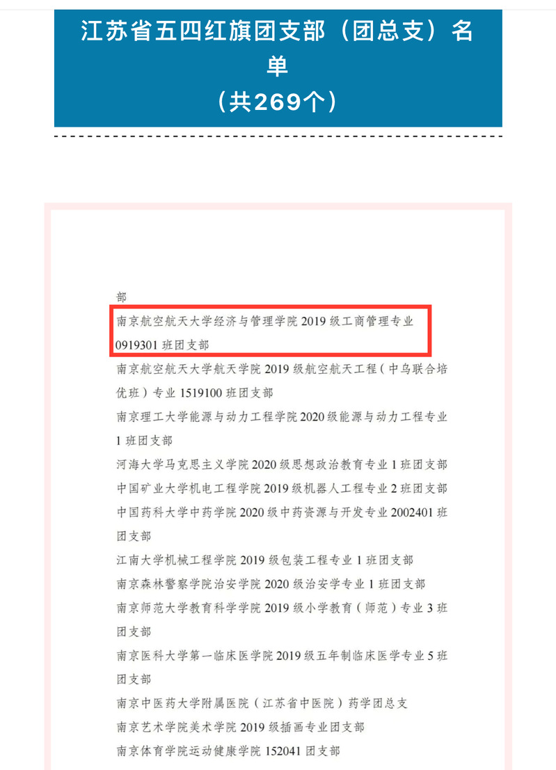 近日,共青团江苏省委公示了2022年度江苏省五四红旗团委(团支部)的评选结果,其中永利官网0919301班团支部荣获江苏省五四红旗团支部。