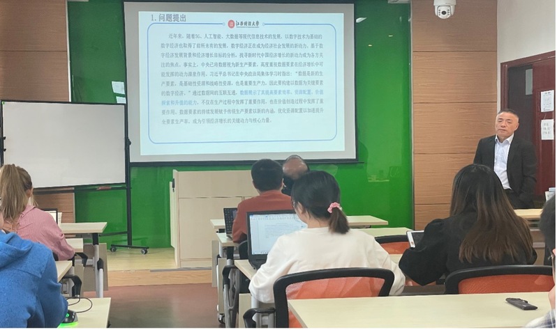 4月28日下午,江西省哲学社会科学重点研究基地——江西省经济预测与决策研究中心首席专家、江西财经大学教授陶长琪应304am永利集团官网人力资源管理研究所和江苏省人力资源发展研究基地的邀请,在学院706会议室为永利官网师生作了题为“数据要素对宏观经济的影响机制”的精彩学术报告。本次报告由教授胡恩华主持,副教授王凌云、博士生和硕士生参加了此次学术报告活动。