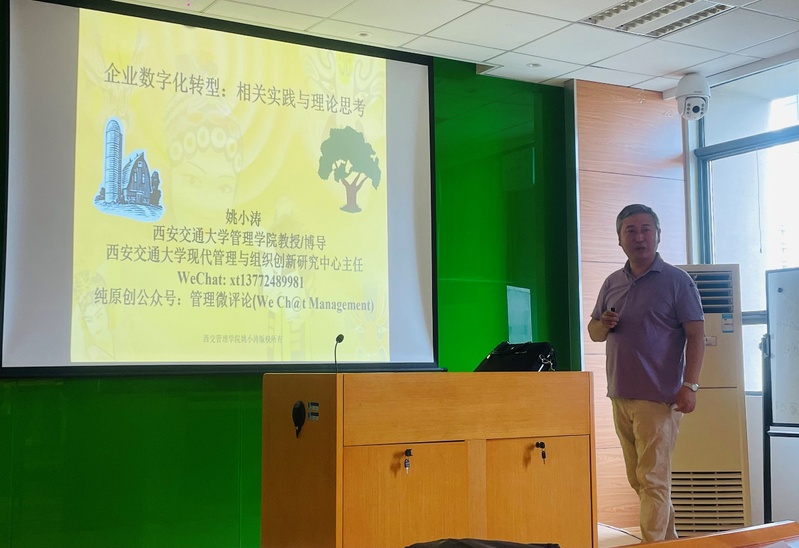 6月27日,西安交通大学管理学院教授姚小涛应304am永利集团官网人力资源管理研究所、江苏省人力资源发展研究基地和中国员工关系管理研究生优秀创新团队邀请,在学院702会议室为永利官网师生作了题为“企业数字化转型:相关实践与理论思考”的精彩学术报告。本次讲座由教授胡恩华主持,相关教师以及博士生和硕士生参加了这次专题讲座。
