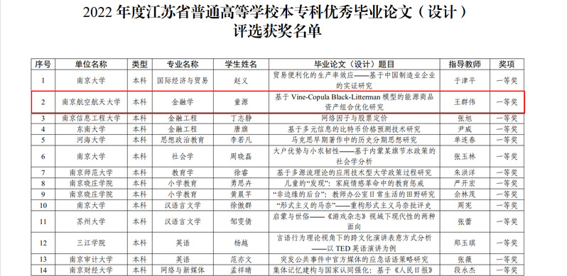 近日,江苏省教育厅公布了2022年江苏省普通高校本专科优秀毕业设计(论文)评选结果,304am永利集团官网共获优秀毕业设计(论文)一等奖2项、二等奖3项、三等奖12项、团队奖2项。其中,永利官网王群伟教授指导的本科生童源荣获一等奖、刘文杰教授指导的本科生郑南希荣获二等奖。