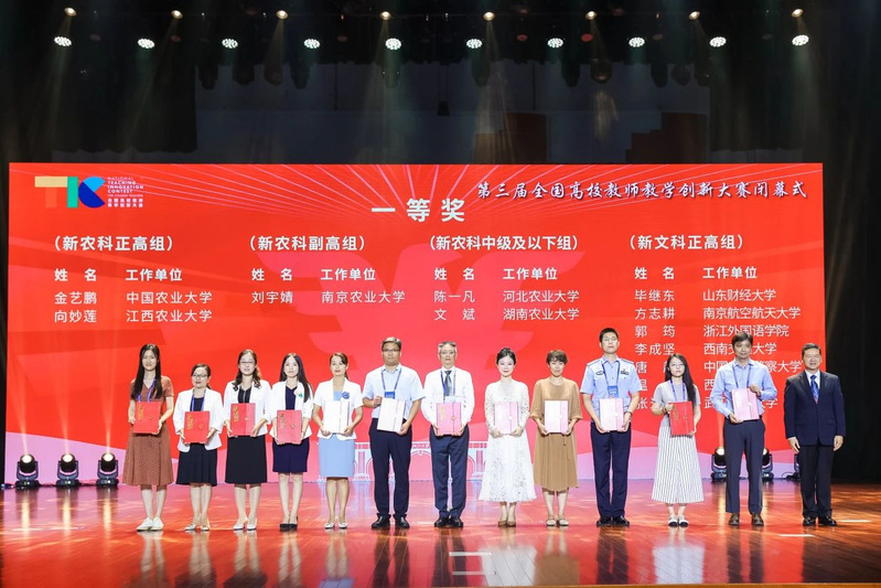 作为我国最高水平的教学赛事,第三届全国高校教师教学创新大赛以“推动教学创新,培养一流人才”为主题,按照新工科、新医科、新农科、新文科、基础课程、课程思政领域和参赛教师专业技术职务等级分组。比赛环节包括网络评审和现场决赛,全国32个赛区共吸引了1194所高校83224名教师参加校赛,23088名教师参加省赛,1701名教师(含团队成员)参加全国赛,其中有239门课程的898位教师入围全国赛现场评审。经过激烈角逐,最终72名教师(团队)获一等奖、166名教师(团队)获二等奖、227名教师(团队)获三等奖,极大地推动了全国高等教育教学创新发展。